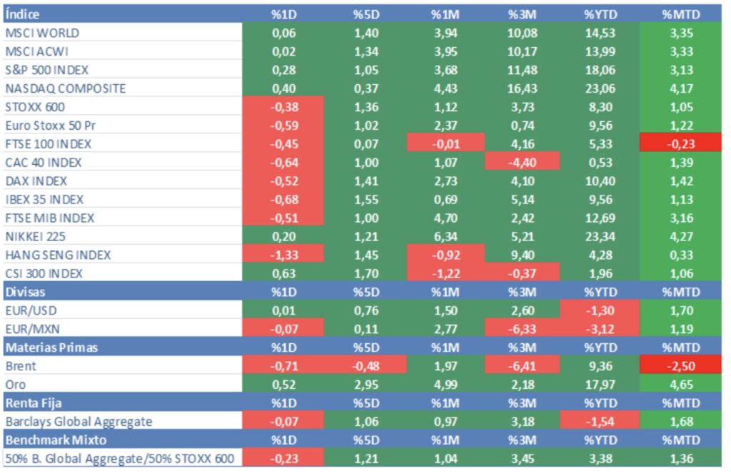 Evolución principales índices: