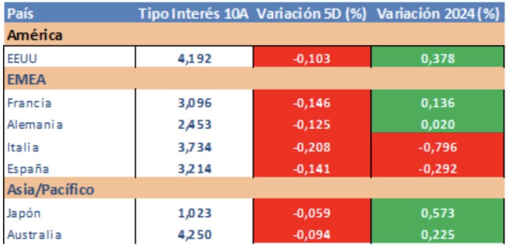 Evolución tipos de interés a diez años: