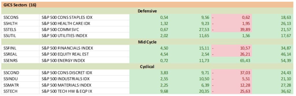 Evolución sectorial Standard&Poors: