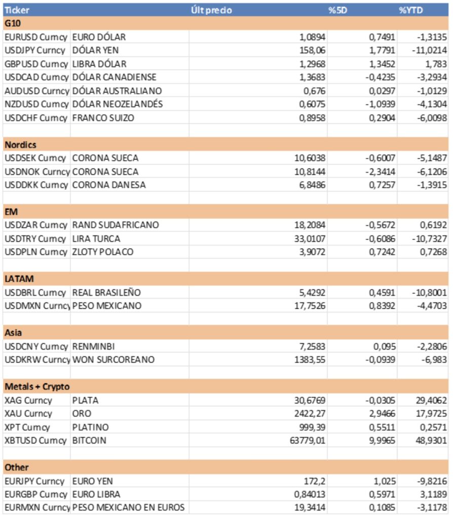 Evolución tipos de cambio: