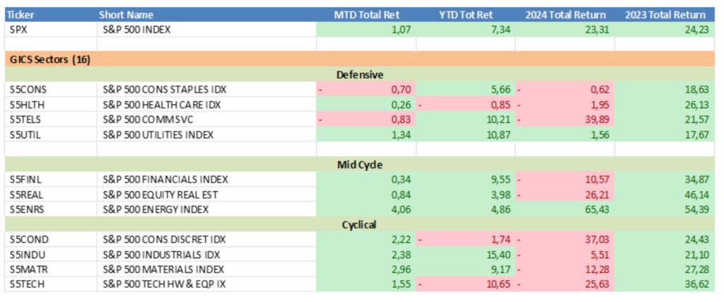 Evolución sectorial Standard&Poors: