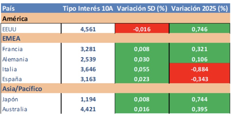 Evolución tipos de interés a diez años: