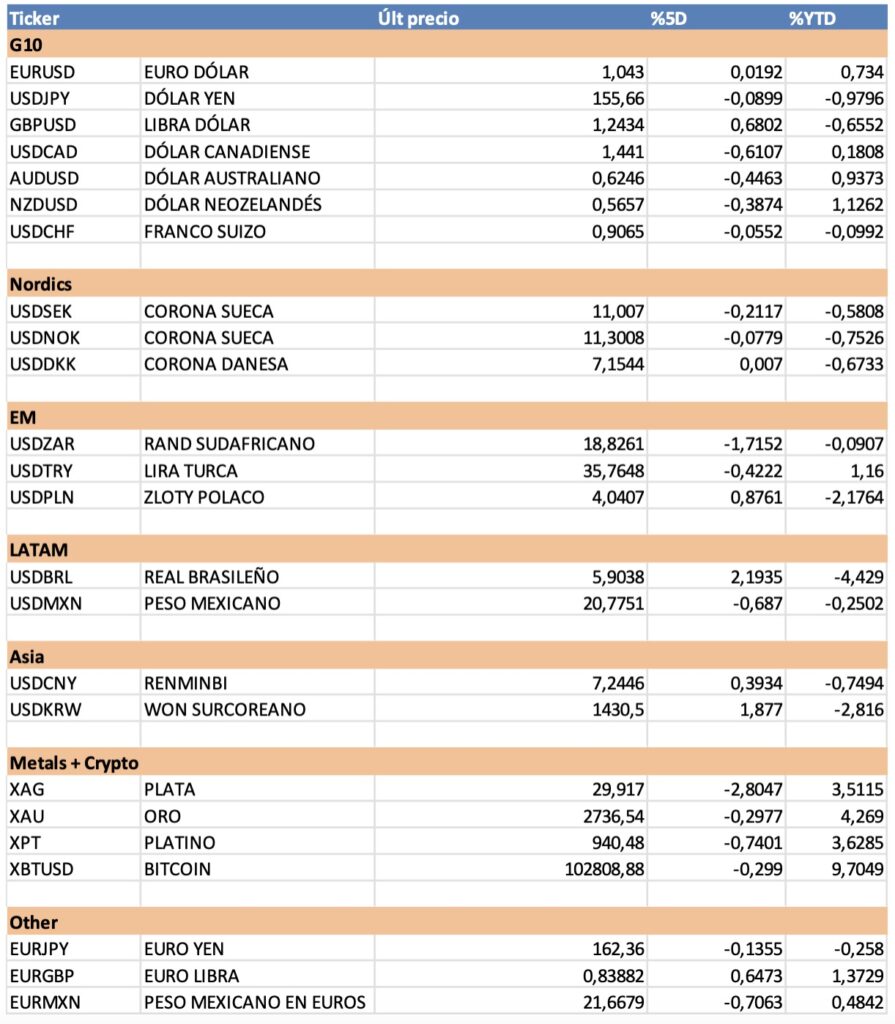 Evolución tipos de cambio: