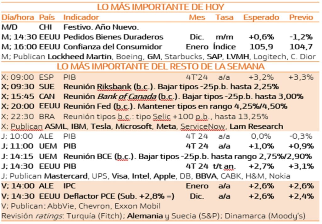 Por lo demás, ayer la renta fija sí funcionó como refugio ante los inversores que huían de la renta variable. De esta manera, el Bono americano a 10 años se gue al 4,53% (-9 pb) y el Bund alemán al 2,53% (-4pb). Recordamos que las bolsas chinas y coreanas se mantienen cerradas por la celebración del Nuevo Año Lunar.