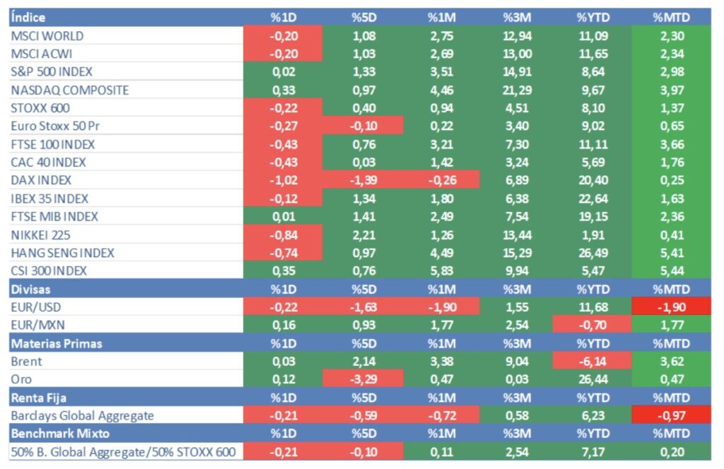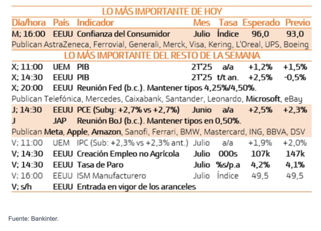 Esta semana estaremos atentos a los resultados de Meta, Microsoft, Amazon y Apple y a los datos de PIB de la Eurozona y EE.UU y al empleo estadounidense.
