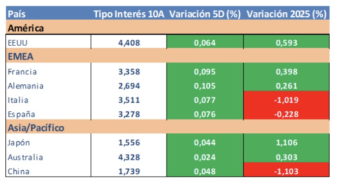Evolución tipos de interés a diez años: