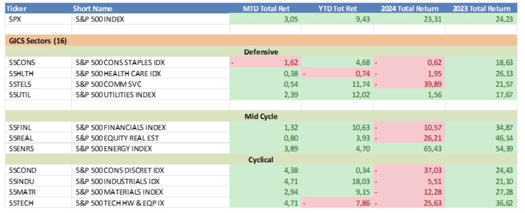 Evolución sectorial Standard&Poors: