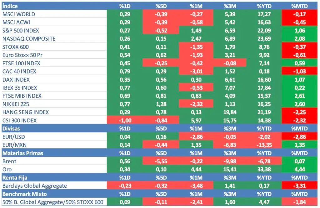 Y nos adentramos en los días más intensos de la campaña de presentación de resultados. Hoy estaremos atentos a los resultados del Banco Santander (ya han salido, algo peores en la parte alta y mejores en Beneficio Neto), a los de Saint Gobain, HSBC y Moncler. En EE.UU esta tarde presenta a cierre de mercado Alphabet, donde estaremos pendientes de la evolución de la división de Inteligencia Artifical después de las fuertes inversiones realizadas.
