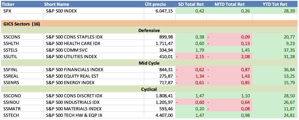 Evolución sectorial Standard&Poors: