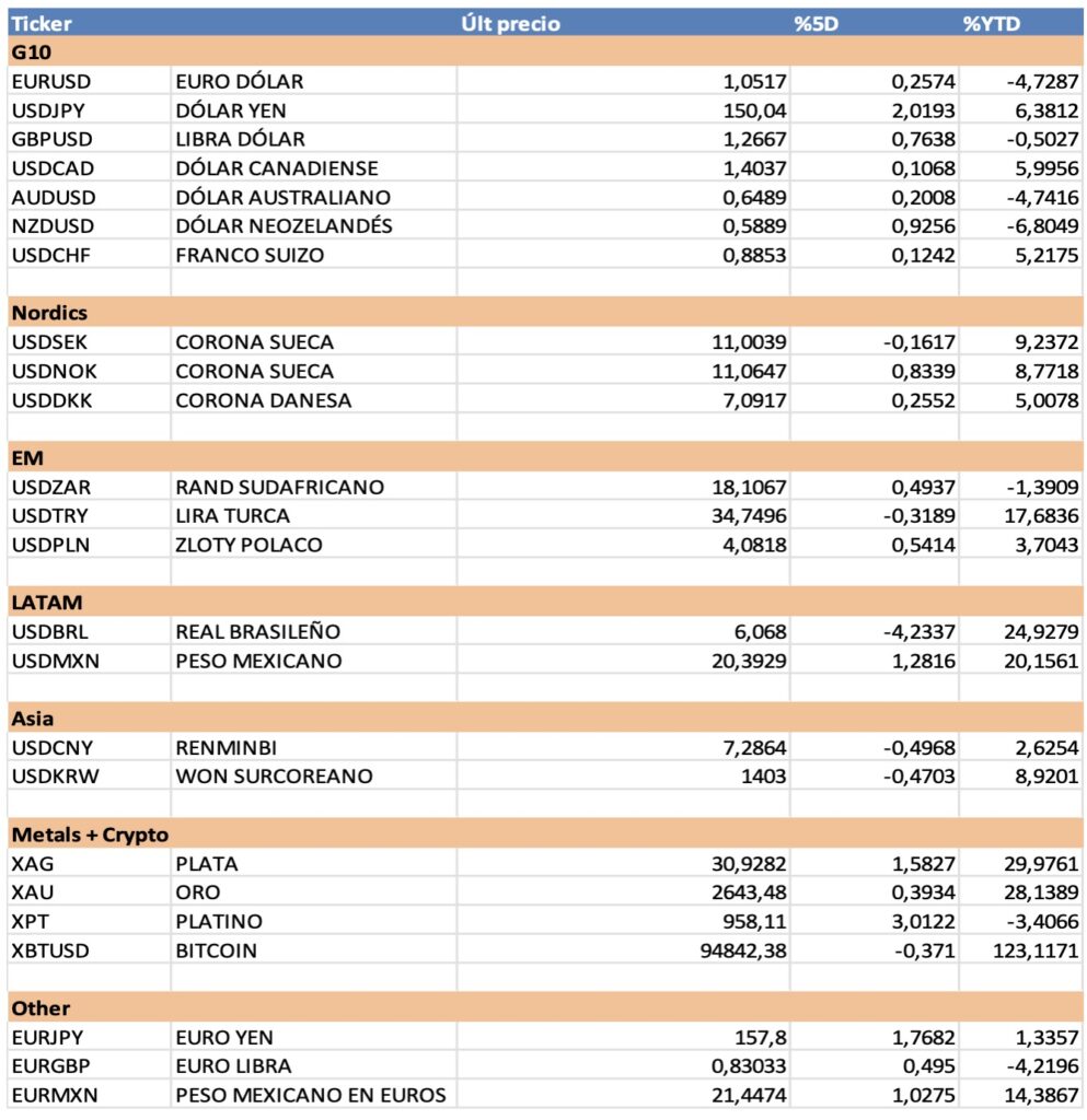 Evolución tipos de cambio:
