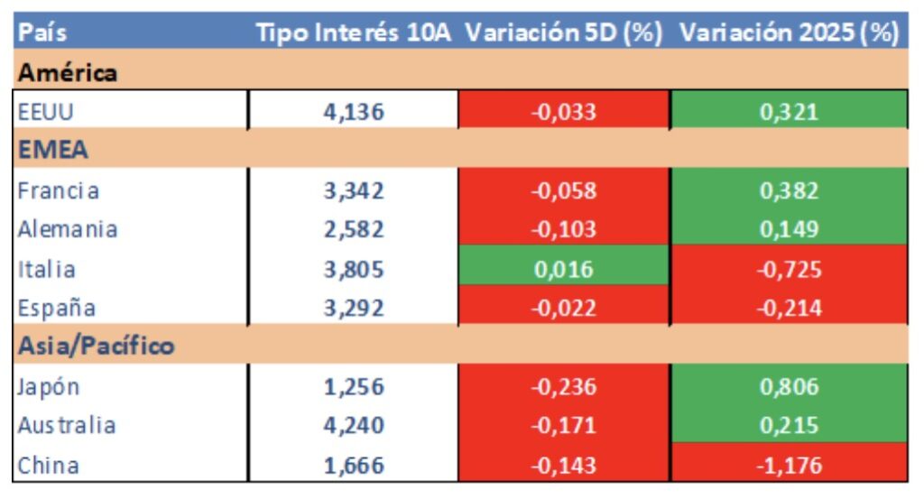 Evolución tipos de interés a diez años: