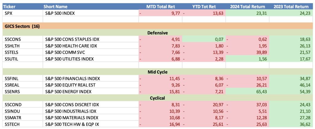 Evolución sectorial Standard&Poors: