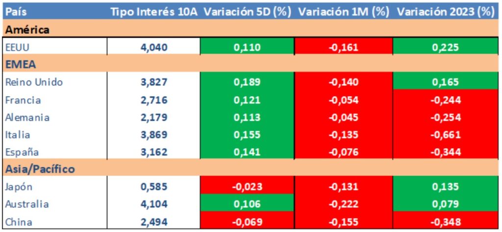 Evolución tipos de interés a diez años: