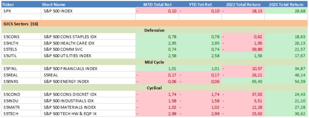 Evolución sectorial Standard&Poors